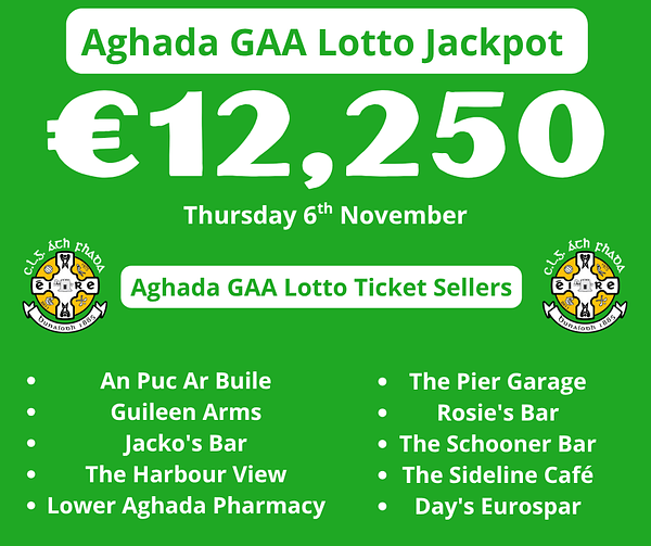 Our club lotto keeps on rising and currently stands on €12,250. Thanks to everyone who supports our lotto every week as it is vital to allow us to cover our daily running costs in the club. Remember, you can buy our club lotto tickets in all the usual local outlets listed in the poster below and online at: https://bit.ly/3bWAiqD